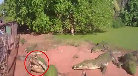 أظهر مقطع فيديو تداولته مواقع التواصل الاجتماعي لحظة التهام أحد التماسيح بحديقة حيوان في أستراليا ذراع زميل له أمام مجموعة من زوار الحديقة.
