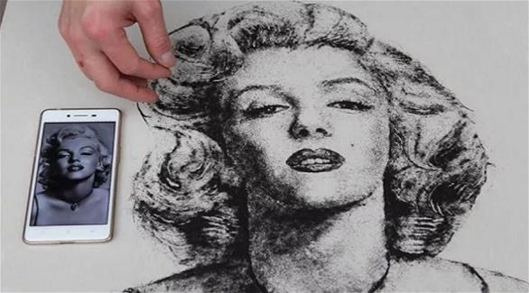 واستلهم لي هذه الطريقة في الرسم من لوحات الرمال، حيث يستخدم نفس التقنيات في لوحاته، ويرش قصاصات الشعر على قماش اللوحة، ثم يقوم بتوزيعها بطريقة مدهشة إلى حين الحصول على الشكل المطلوب بحسب ما ذكر موقع أوديتي سنترال.