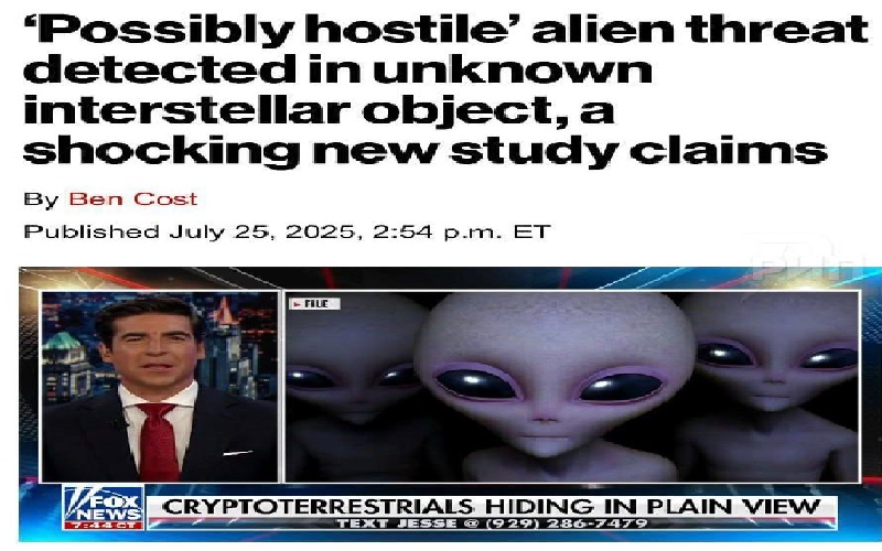 وبحسب الصحيفة فقد تكون هذه سفينة متخفية من حضارة أخرى - على حد زعمهم - تحمل نوايا غير ودية. ومصطلح حضارة اخرى نظرية اعتمدتها افلام هوليود في اشارة الى وجود حياة خارج نطاق الارض.