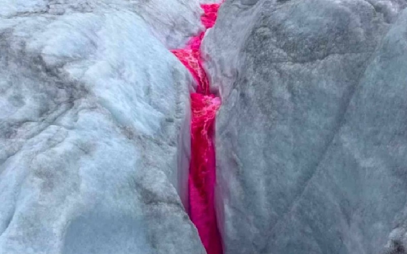 منذ العام 1850 فقد هذا النهر الجليدي، الواقع في جبال الألب السويسرية، حوالي 60% من حجمه، ولا يُعدّ اللون الوردي تجميلياً، بل هو مُتتبّع هيدرولوجي يسمح للعلماء بمراقبة كيفية تحرك مياه الذوبان وانتشارها، مما يوفر نظرة ثاقبة في الوقت الفعلي لمعدل الذوبان وكيفية تدفق المياه من الكتلة الجليدية إلى الأنهار الرئيسية في أوروبا، نُشرت الصور والنتائج المذهلة لأول مرةٍ في مجلة نيو ساينتست .