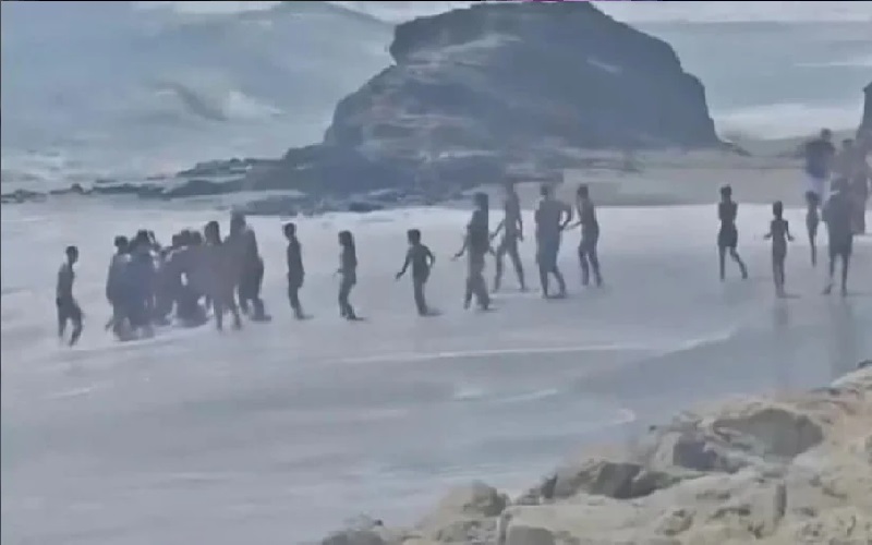 ورغم التحذيرات، دخل خمسة أطفال إلى المياه الهائجة، وتمكنوا جميعاً من الخروج بأمان عدا طفل واحد جرفته الأمواج لمسافة قاربت عشرة أمتار داخل البحر.