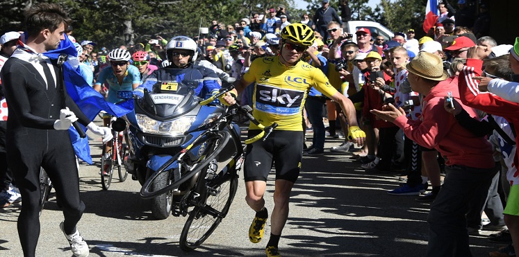 وقال فروم عقب السباق: “قلت لنفسي: لا توجد دراجة وكنت أعلم أن سيارة المساعدة تبعد خمس دقائق في الخلف ولذا كان على أن أركض”.