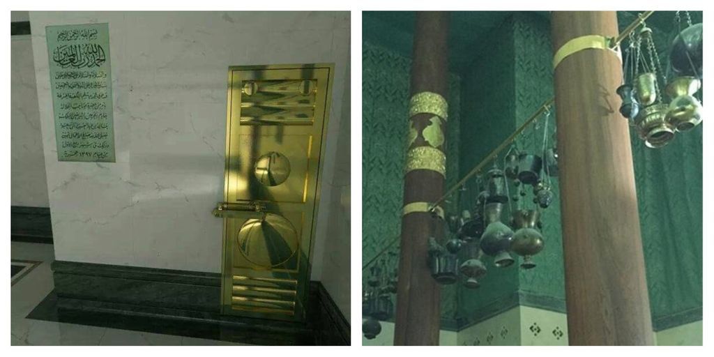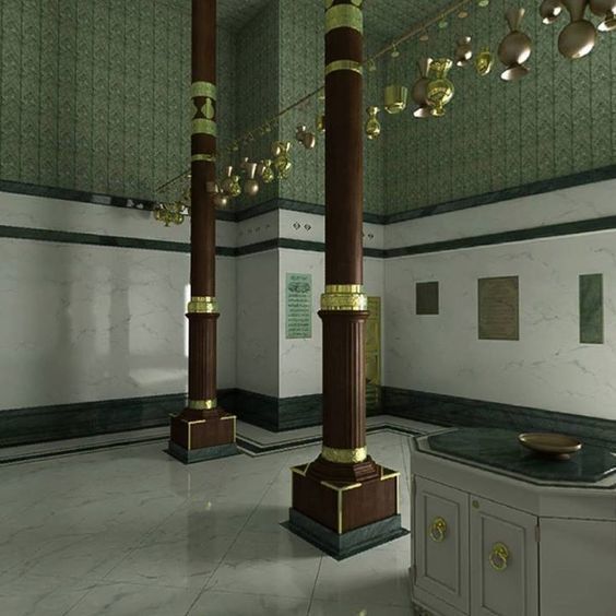 كما يوجد داخلها عدد من القناديل المعلقة المصنوعة من النحاس والفضة والزجاج المنقوش بآيات قرآنية تعود للعهد العثماني، ومجموعة من بلاطات الرخام التي تم تجميعها من كل عهد من عهود من قاموا بتوسعة الحرم المكي الشريف، إضافة إلى سُلّم مصنوع من الألومنيوم والكريستال يصل حتى سقف الكعبة.