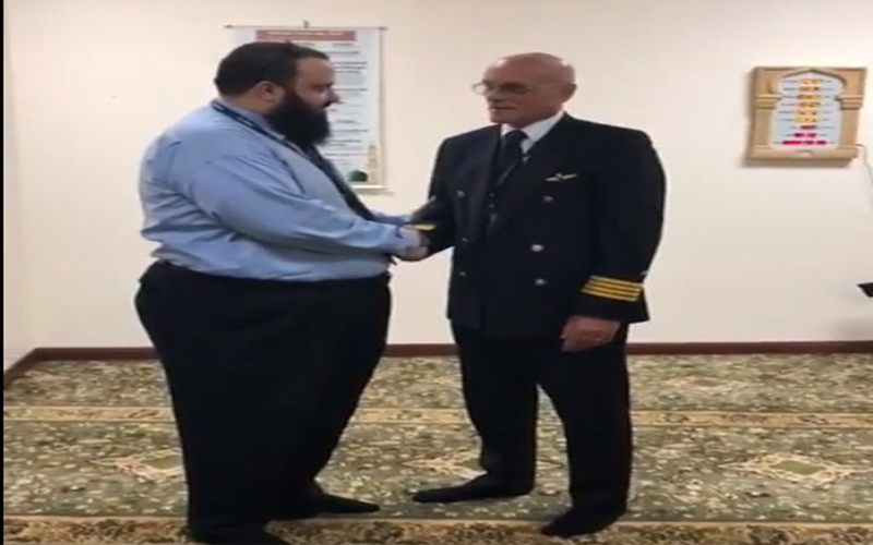 تداول نشطاء مواقع التواصل الاجتماعي فيديو يصور لحظة إعلان كابتن طيار ايطالي يعمل على الخطوط الجوية السعودية اسلامه.