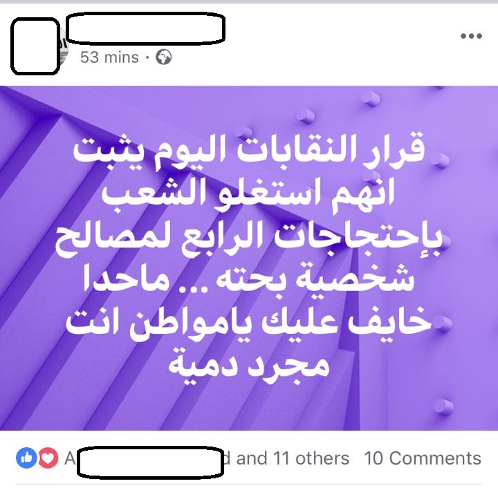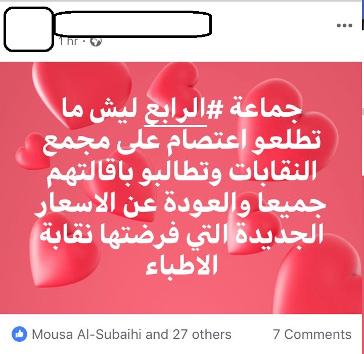 واوضحوا ان قرار النقابات يثبت انهم استغلوا الشعب الاردني باحتجاجات الرابع لمصالح شخصية بحته ، ووصفوا القرار بغير الانساني وتجاري وارخص من قرارات الحكومات الاردنية ، داعين الشارع الاردني الى الاعتصام على الدوار الرابع للضغط على نقابة الاطباء للتراجع عن هذا القرار المجحف .