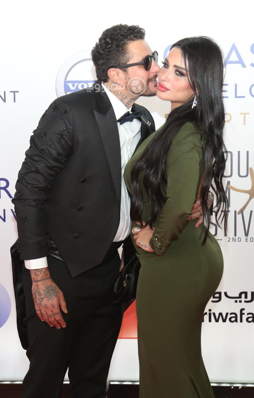 أهدى الفنان أحمد الفيشاوي، زوجته قبلة أمام الحضور بافتتاح فيلم 'عيار ناري' ضمن فعاليات مهرجان 'الجونة السينمائي' بدورته الثانية.