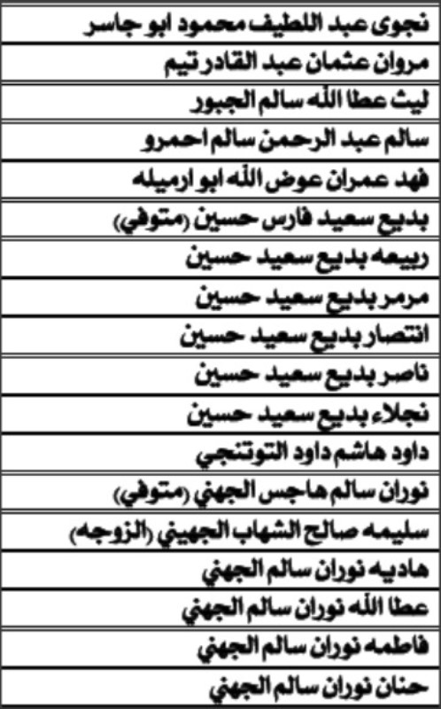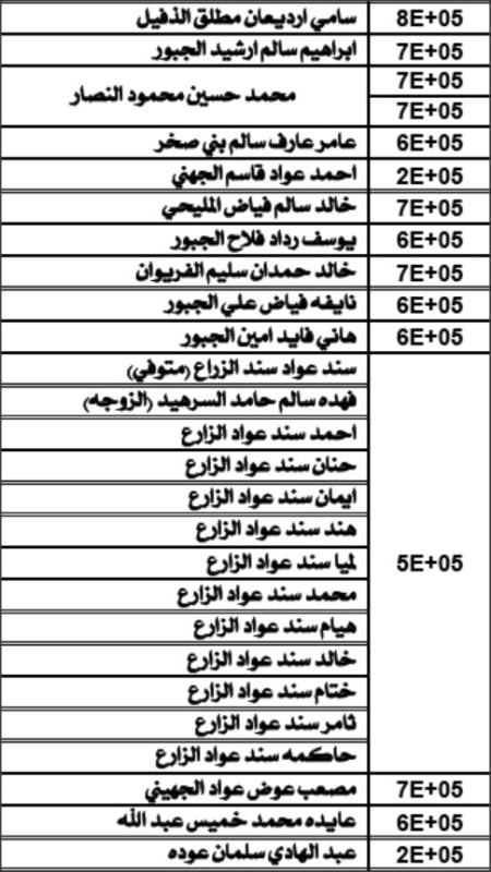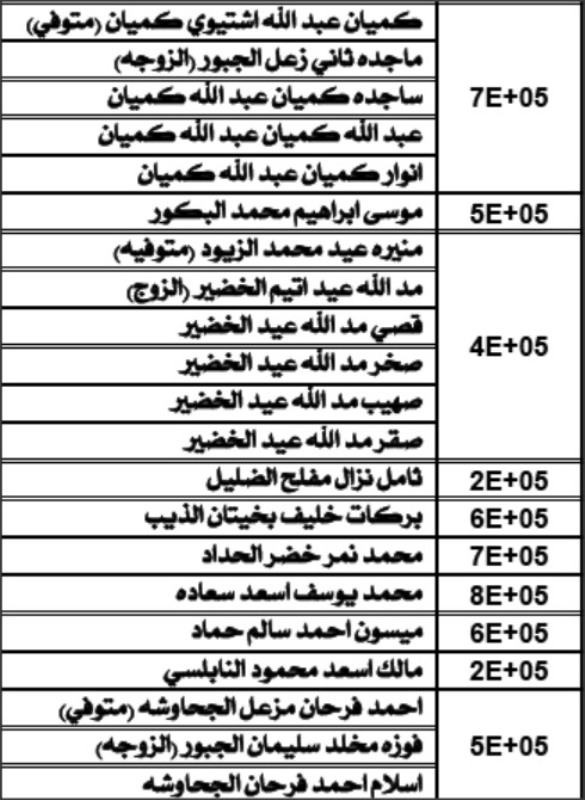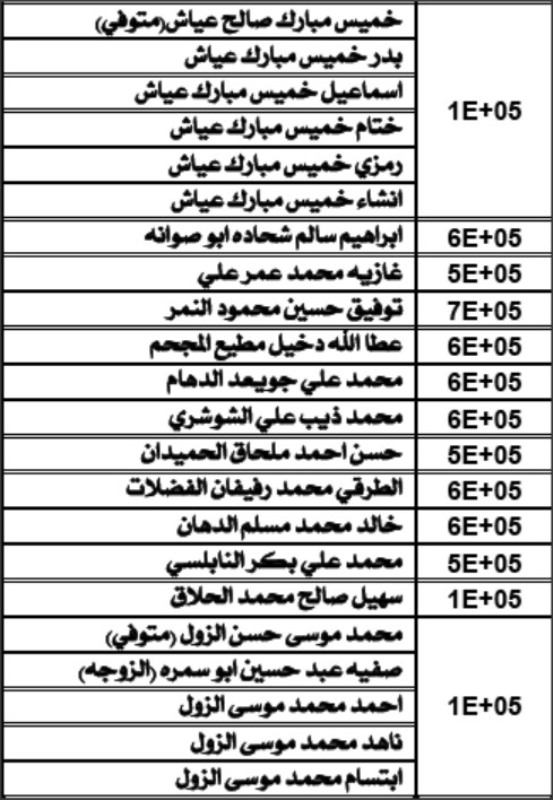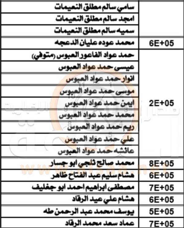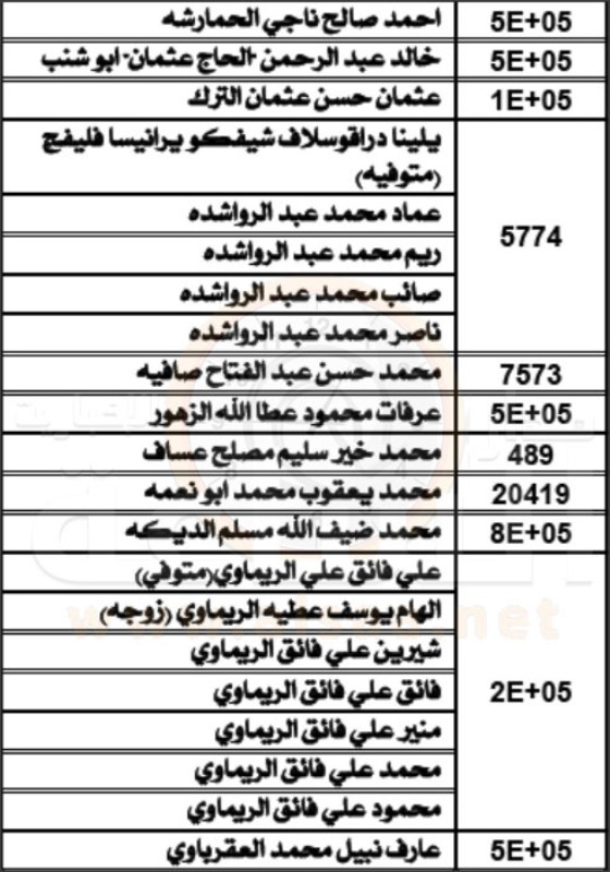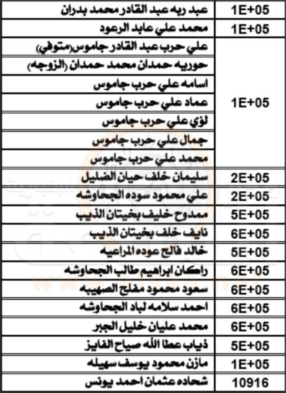 نيسان ـ نشرت سلطة المياه أسماء الأشخاص المكلفين بتسديد مبالغ متحققة لخزينة سلطة المياه وتخلفوا عن تسديدها رغم إشعارهم بذلك، ومقدار المبالغ المطلوبة من كل منهم.