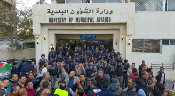 اعتصم موظفو البلديات صباح الأحد، أمام الوزارة في العاصمة عمان، مطالبين بتحقيق مطالبهم وسط تواجد أمني كثيف.