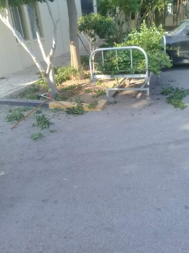 نقل مواطنون صوراً من داخل حرم مستشفى ابي عبيدة الحكومي في لواء الاغوار الشمالية، اثناء قيام احد العاملين في المستشفى بنقل بقايا تقليم الاشجار بواسطة سرير طبي.