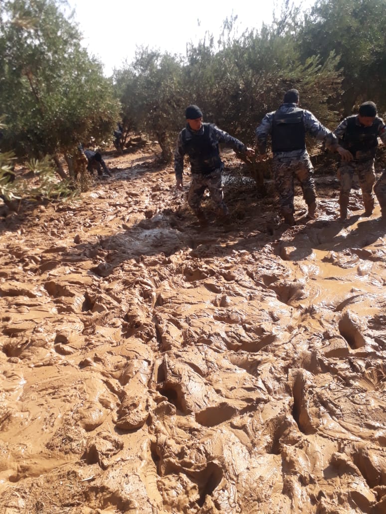 نيسان ـ دفعت قوات الدرك بتعزيزات من القوى البشرية وآليات الدفع الرباعي، منذ فجر اليوم إلى منطقة الوالة ومليح في محافظة مادبا لمساندة جهود البحث والإنقاذ، حيث لا تزال الجهود مستمرة في المنطقة.