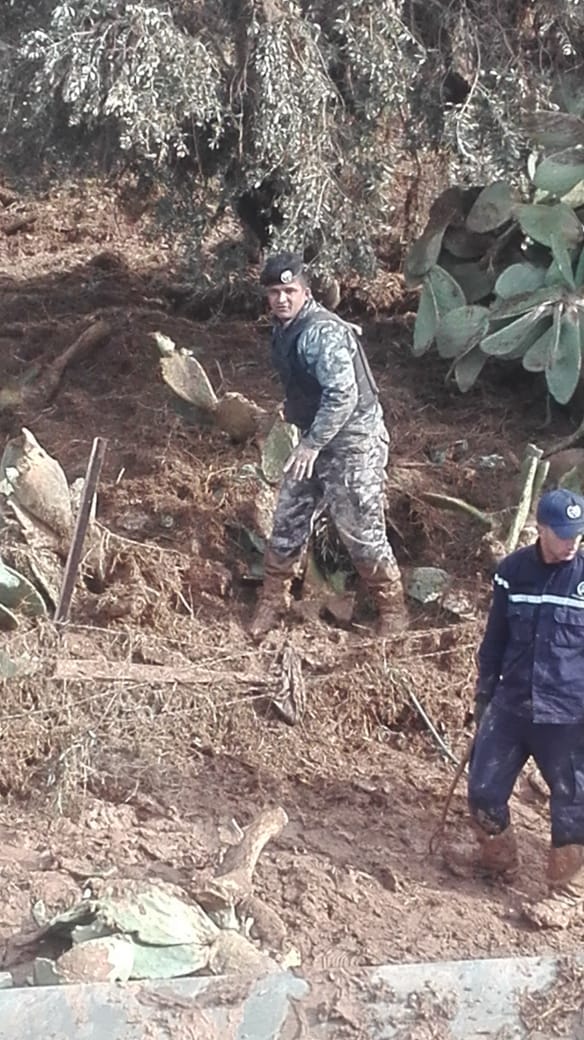وشاركت ولا تزال ناقلات الجنود والآليات والفرق التابعة لقوات الدرك في عمليات الإنقاذ، وتمكنت ليلة أمس من فتح الطريق الصحراوي بعد سحب عشرات المركبات المدنية التي كانت عالقة في منطقة ضبعة، وتسببت في إغلاق الطريق العام لعدة ساعات
