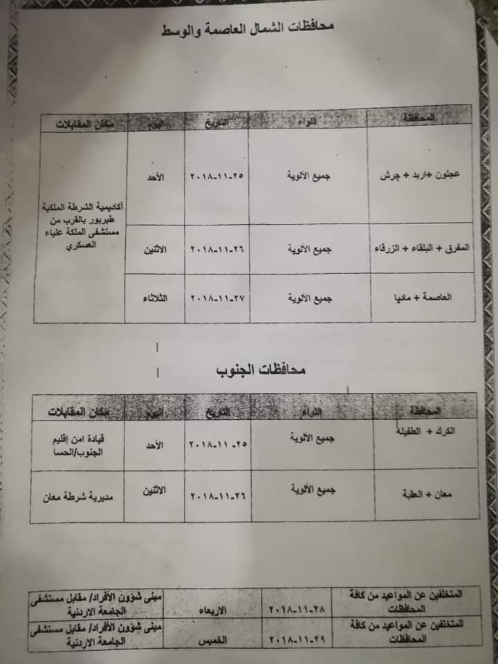 نيسان ـ نشرت صفحة مديرية الأمن العام على الفيسبوك إعلن تجنيد للأفراد وحسب الشروط والتفاصيل التالية ، كل حسب منطقته .