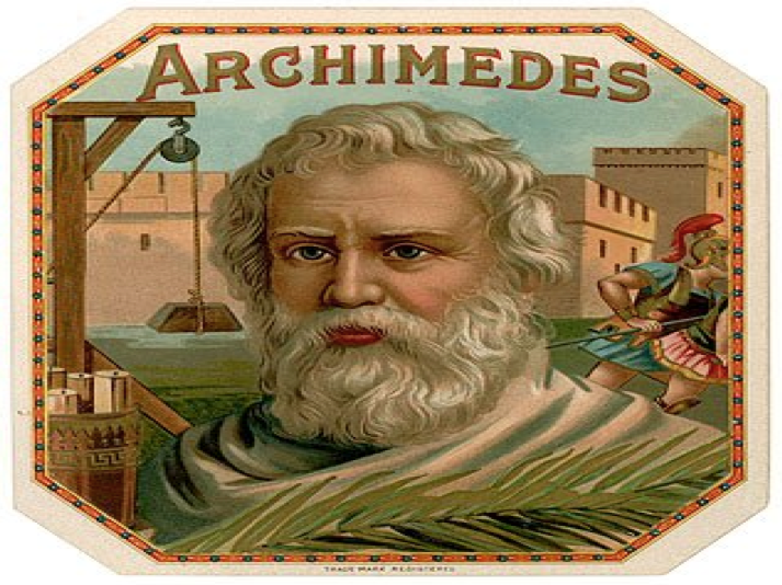 ارخميدس هو فيلسوف يونانيّ ولد بمدينة صقليه التي كانت تتمتع بحكم ذاتيّ وتوفي بها مقتولاً على يد جندي رومانيّ أثناء حصار مدينته ولم يكن يعلم بأن مدينته محاصره إذ كان يعكف على حل مسألةٍ رياضيةٍ .