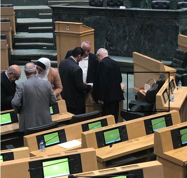 المعشر غادر مجلس النواب تاركا سلة الغذاء وحاجات المواطن الأردني التي اهدتها النائب ديمة طهبوب لمكتب رئيس الوزراء على كراسي الوزراء.