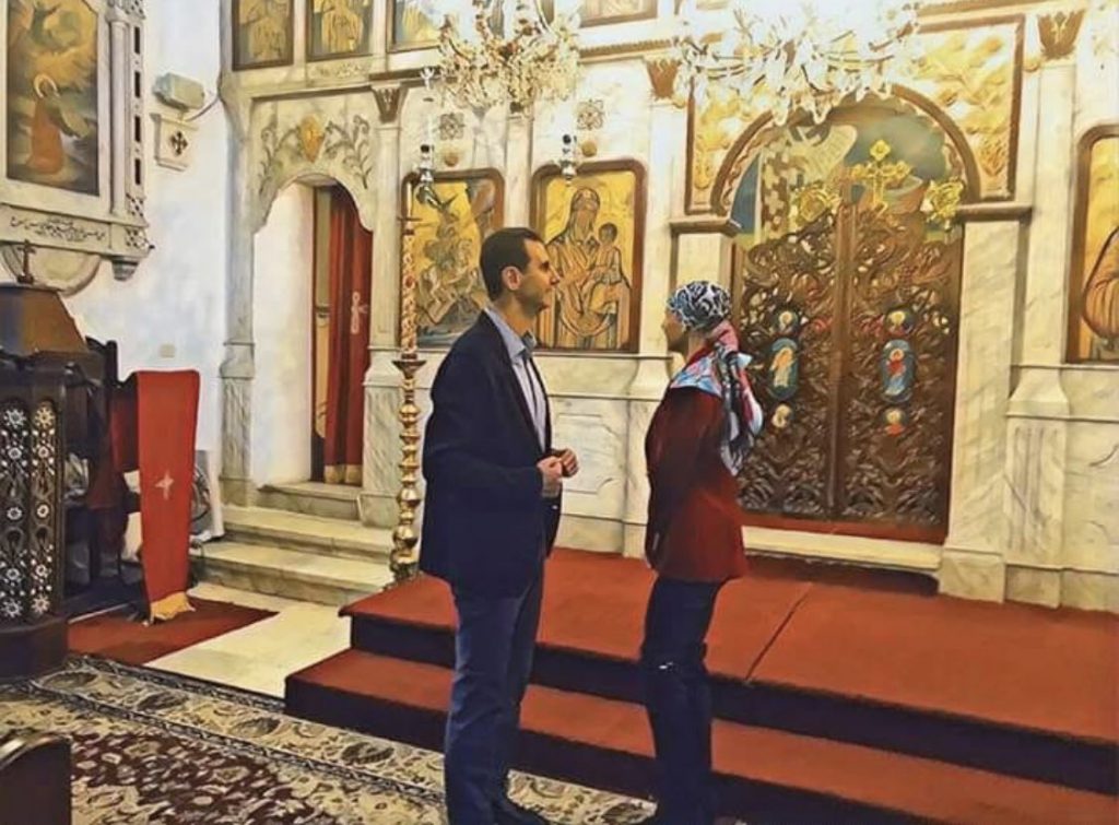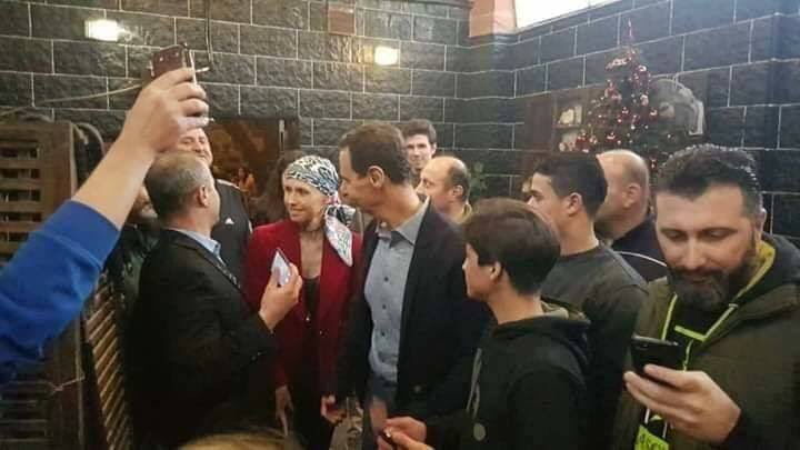 وظهرت أسماء الأسد رفقة زوجها بشار، السبت، في مدينة طرطوس والتقيا المواطنين فى كنسية بقرية “السودا” التابعة للمدينة بالتزامن مع احتفالات راس السنة.