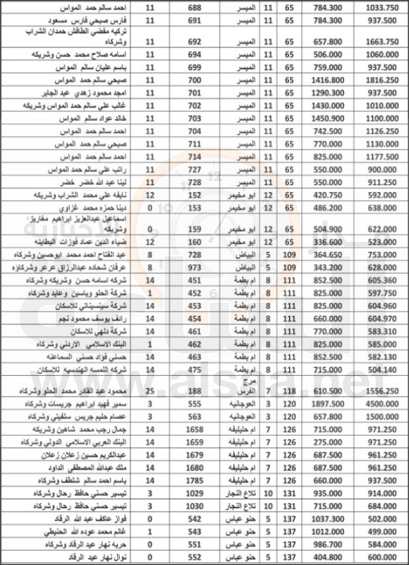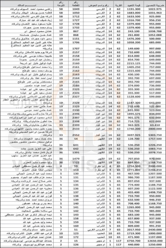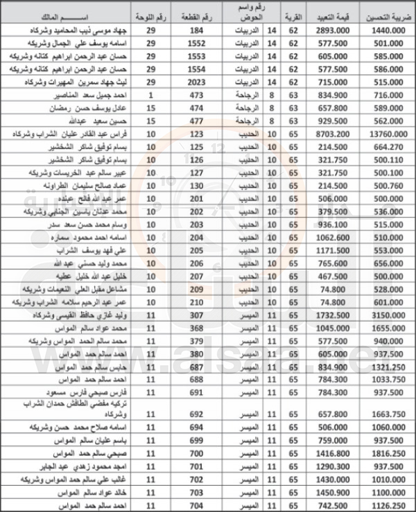 وأشار إلى أن الامانة تمنح خصما تشجيعيا مقداره 25 بالمائة لمن يبادر بدفع ضريبة التحسين خلال سنة واحدة من تاريخ نشر الاعلان. وكذلك العمل على انشاء ارصفة لقطع اراضيكم المذكورة ادناه.