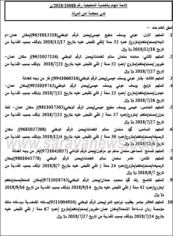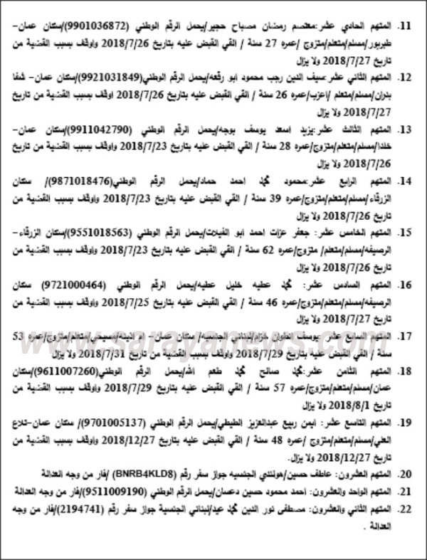 والمحامون هم: يوسف الحمود، سميح خريس، صبحي المواس، جلال الشورة، صفوان المجالي، علاء الحمود، ومصطفى فريحات