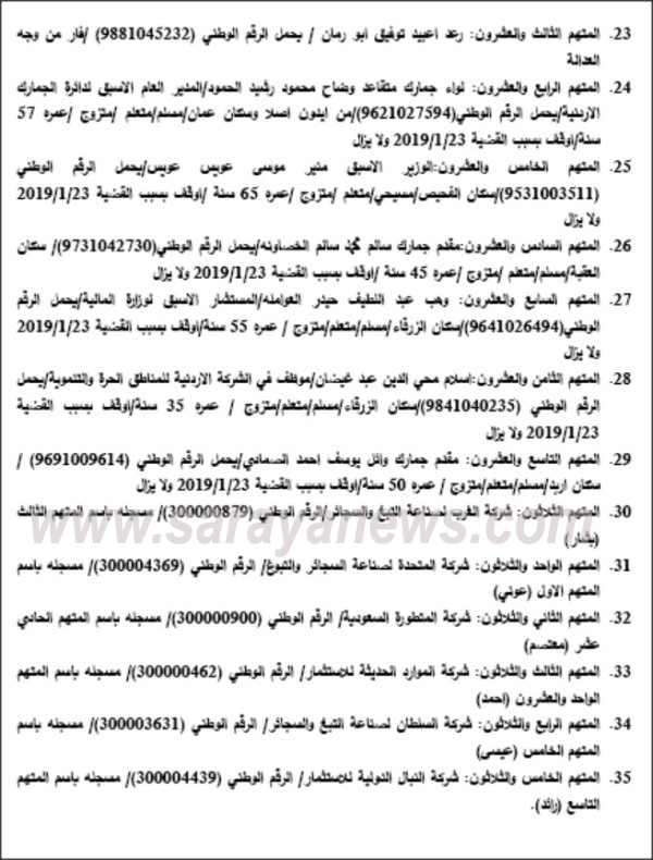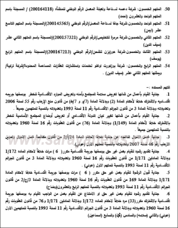 ويذكر ان التهم المسندة للمحاكمين بقضية الدخان تقدر ب(8) جنايات و (13) جنحة