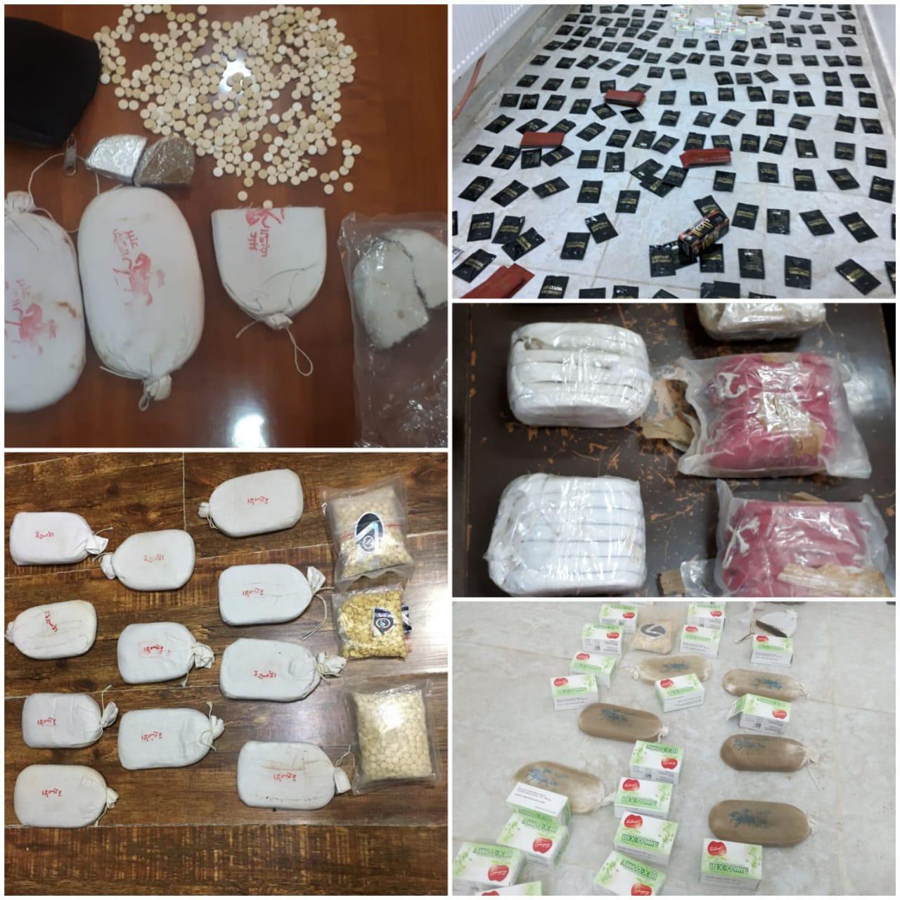 وفي لواء الرمثا القت كوادر مكافحة المخدرات القبض على ٥ أشخاص في قضيتين منفصلتين حيث القي القبض في القضية الاولى على ٤ اشخاص كانوا متواجدين داخل أحد المنازل بعد أن ابدوا مقاومة شديدة وتمت السيطرة عليهم وضبط بحوزتهم ١٠ كغم من مادة الجوكر و ٧ كفوف من مادة الحشيش و ١٠٠٠ حبة كبتاجون و ٥ غم من مادة الهيروين و ٢٤٠٠ حبة مخدرة مختلفة الأنواع ومعدات تغليف تستخدم في تجهيز المواد المخدرة للبيع وادوات حادة ، فيما القي القبض في القضية الثانية على أحد المروجين في الشارع العام متلبساً ببيع المواد المخدرة وبحوزته ما يقارب ٢٠٠ حبة مخدر ة .