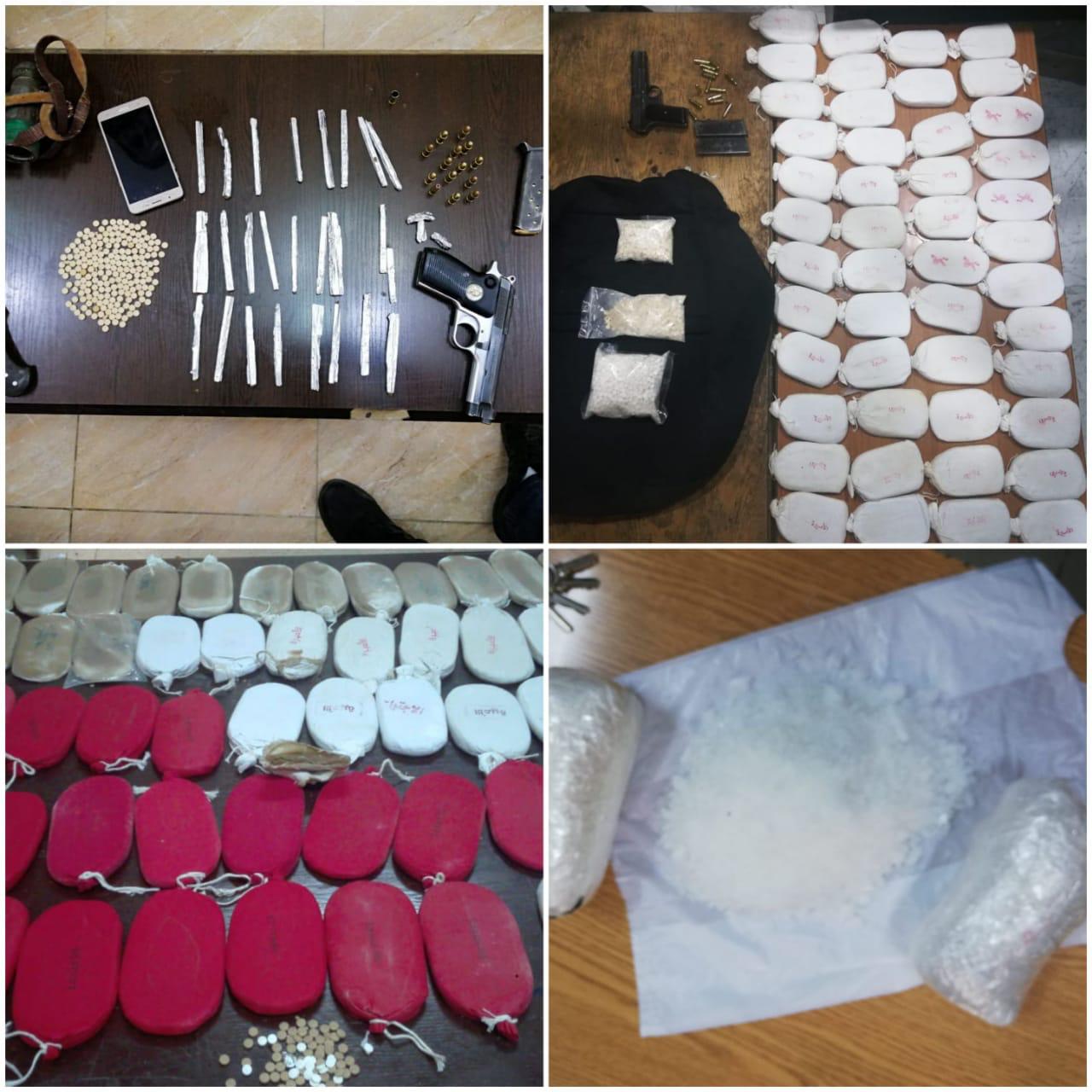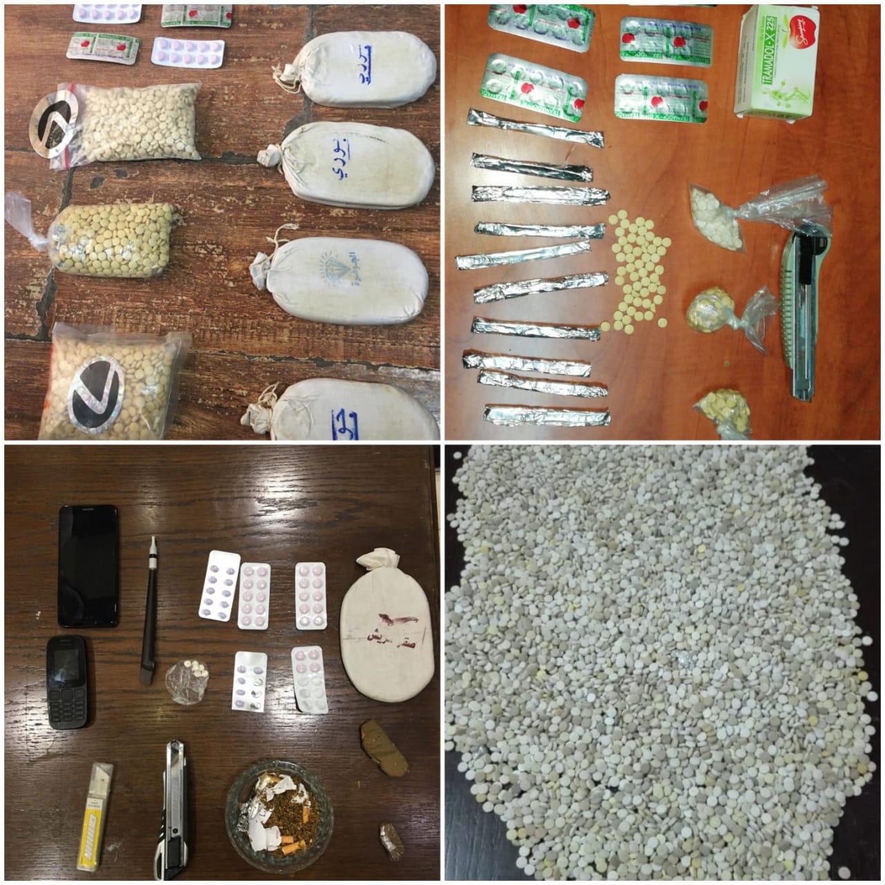 والقي القبض على ٣ أشخاص في محافظة الزرقاء من مروجي المواد المخدرة وآخر في منطقة عين الباشا في محافظة البلقاء وضبط بحوزتهم كميات متفرقة من المواد المخدرة .