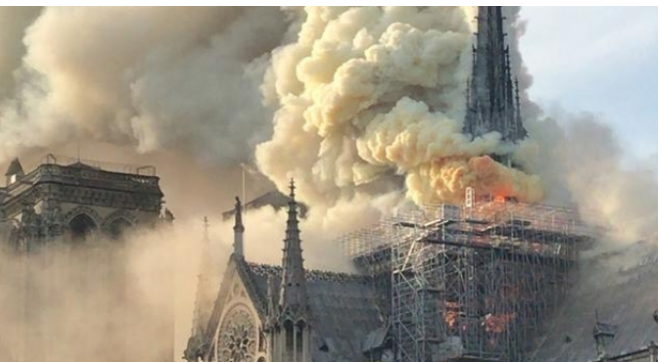 انهيار برج كاتدرائية نوتردام التاريخي في باريس بسبب الحريق (صور وفيديو)