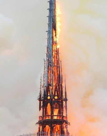 واندلع الحريق في الطبقة العليا من الكاتدرائية، وأفادت وكالة "فرانس برس" بأن البرج الرئيسي للكتادرائية قد انهار بفعل الحريق.