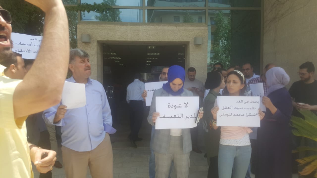 بالصور .. صحفيو وموظفو الغد يعتصمون احتجاجا على إنهاء عقد المومني