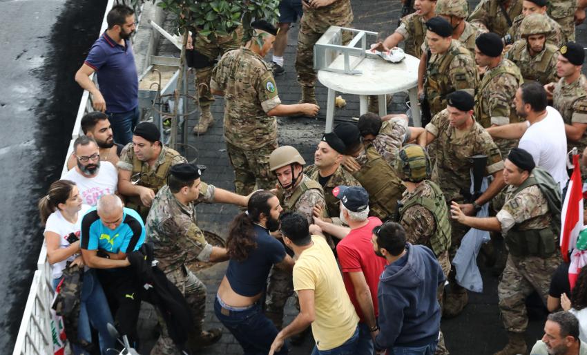 ووقع اشتباك بالأيادي بين متظاهرين والجيش في عدد من المناطق منها صيدا (جنوب لبنان)، ومنطقة الزوق (كسروان)، حيث حصلت حالة كرّ وفر بين المتظاهرين والجيش الذي عمل على إزالة الخيم الموضوعة في الطريق، في حين أكد المتظاهرون أنهم سيفترشون الأرض رداً على طريقة معاملة الجيش.