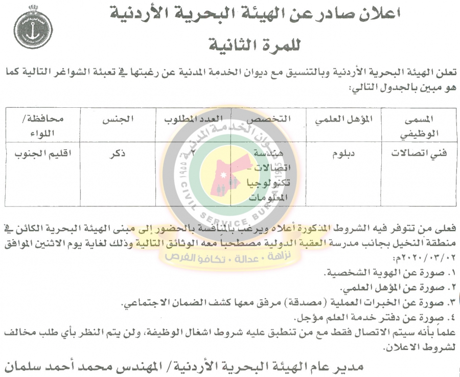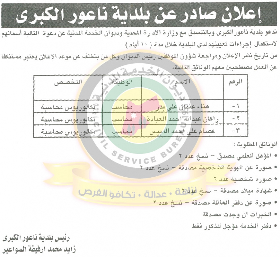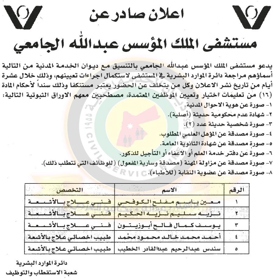 نيسان ـ دعا ديوان الخدمة المدنية بالتعاون مع مختلف الوزارات والمؤسسات الحكومية، التالية اسماؤهم لاجراء المقابلات الشخصية وعقد الامتحان التنافسي لغايات التعيين.