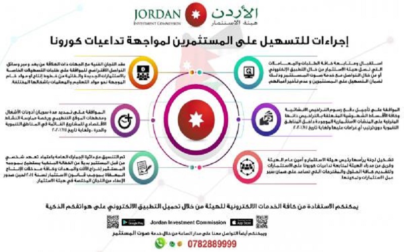 نيسان ـ اتخذت هيئة الاستثمار العديد من الإجراءات للحفاظ على مصالح المستثمرين والقطاع الخاص في ظل تداعيات كورونا.