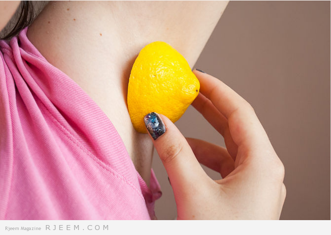 استخدمي شرائح الليمون أيضًا لفرك المناطق الداكنة من الإبط، حيث يساعد ذلك على تفتيح لون البشرة وإزالة الجلد الميت. بعد ذلك، يشطف جيدًا مع استخدام مرطب، فقد يتسبب الليمون في تجفيف البشرة.