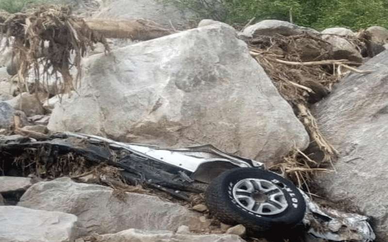 و عثر مواطنون صباح الثلاثاء على السيارة التي كانوا يستقلونها مطمورة بالتراب والصخور في موقع وعر، يبعد 3 كم عن مكان النزهة.