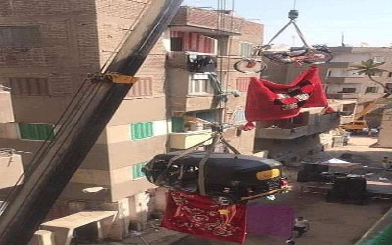 نيسان ـ تداول العديد من رواد مواقع التواصل الاجتماعي خاصة "فيسبوك"، صورا لعرض جهاز عروس "العفش" قالوا إنها من منطقة روض الفرج بالقاهرة، حيث أظهرت الصور توك توك وموتوسيكل معلقان بالحبال بين العقارات من أجل استعراض جهاز العروس وإبرازه للسكان.