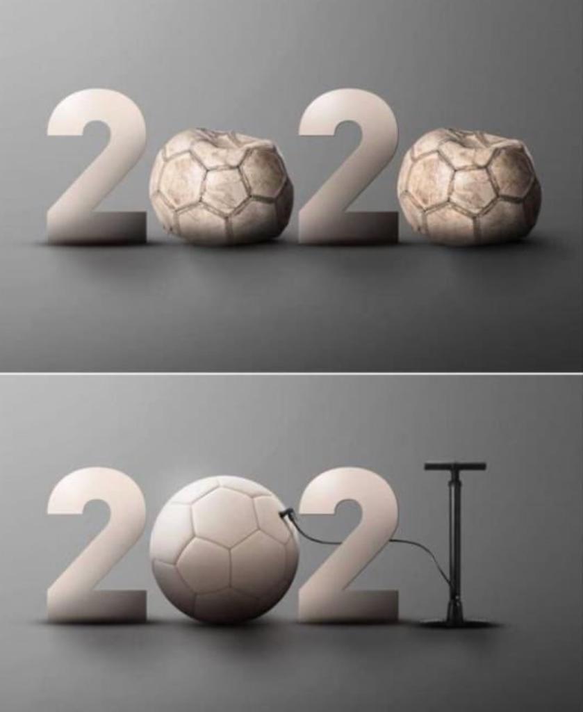 وقام سموه بنشرة الصورة التي تظهر كرتي قدم فارغتين من الهواء خلال العام 2020، في اشارة إلى التوقف الطويل الذي تعرضت له كرة القدم خلال العام الماضي، معرباً عن أمله بأن يكون العام الجديد 2021 عاماً تعود عجلة كرة القدم إلى مسيرتها حيث نشر صورة "منفاخ" يمثل الرقم 1 وصورة كرة قدم عائدة للحياة وجاهزة لأن تداعب أقدام اللاعبين تمثل الرقم 0 في العام 2021.