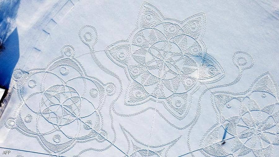 وتنكشف الرسمة، التي وقعها يان بيكو في دائرة قطرها 160 مترا، من المساحة المكسوة بالثلج من علو، وقد رسمها في عطلة نهاية الأسبوع الماضي، لتكون أكبر رسمة في الثلج في هذا البلد الواقع في شمال أوروبا.