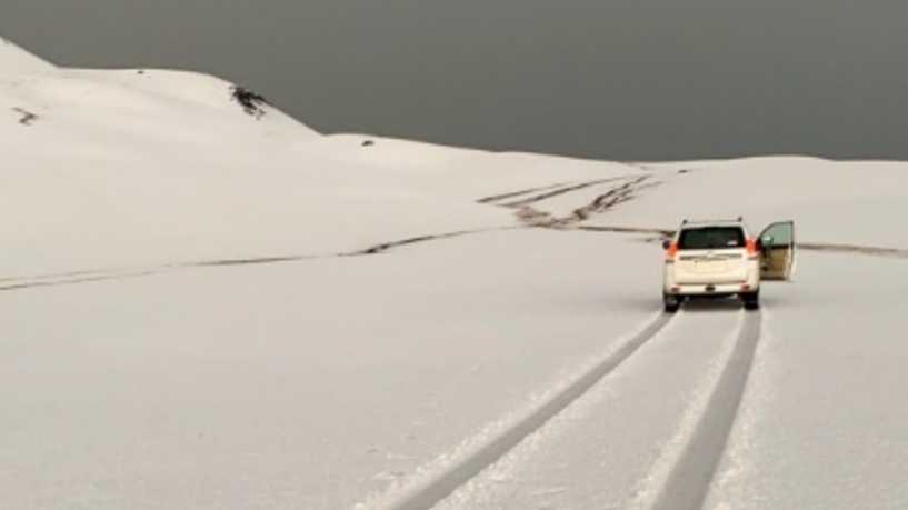 وبين الصور المتداولة، ظهرت صورة لجمل بين كثبان مكسية بالبياض، عوضا عن مشهد الجمل المعتاد بين الكثبان الرملية.