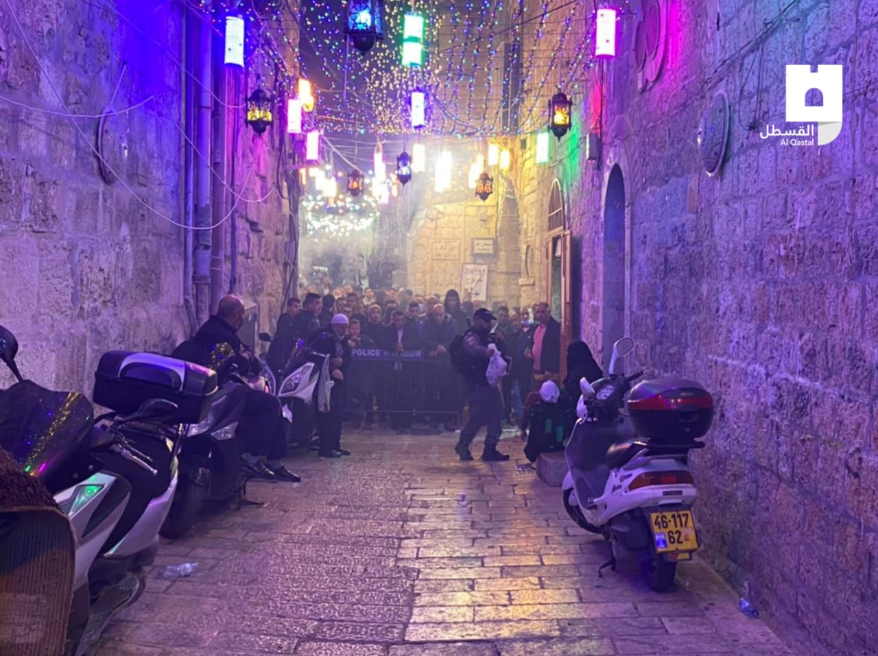 نيسان ـ نصبت قوات الاحتلال حاجزًا لمنع مقدسيين من الوصول لمنطقة باب حطة لأداء صلاة الفجر في المسجد الأقصى.