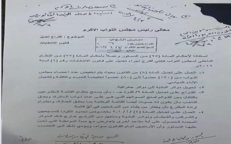 وكتب العرموطي "هذا مشروع قانون الإنتخابات التي تقدمت به كتلة الإصلاح لدى مجلس النواب بتاريخ ٣-٤-٢٠١٨ وأحيل الى اللجنة القانونية لدراسته إستنادا لأحكام المادة (٩٥ )من الدستور وأرسل نسخة منه الى حكومة الرئيس عمر الرزاز".