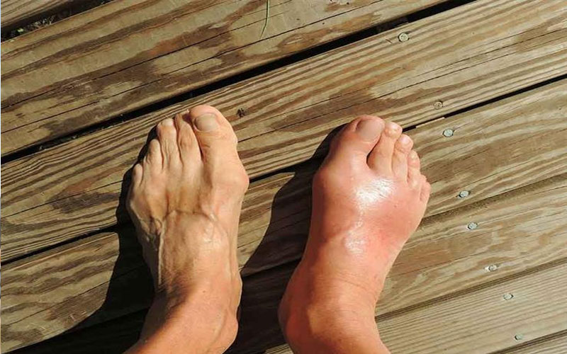 ألم شديد في المفاصل: غالبًا ما يكون الألم في أشده في أول 4 – 12 ساعة من الإصابة، وقد يحدث الألم في مفصل الأصبع الكبير من القدم، أو أي مفصل اخر.