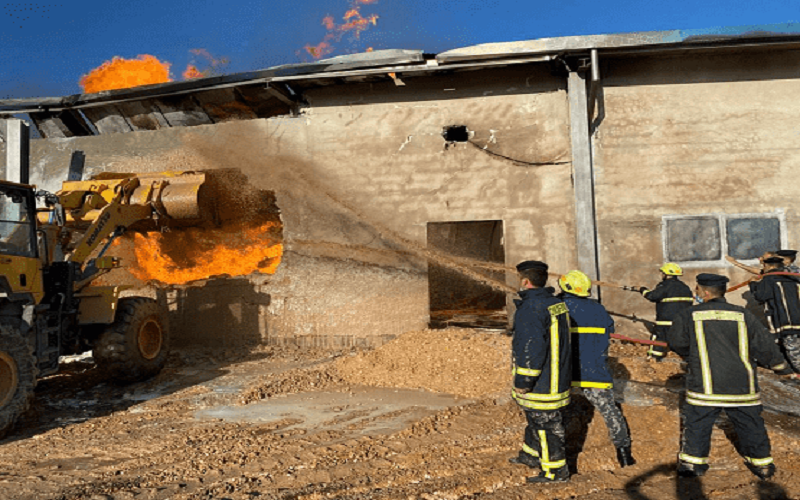 الدفاع المدني يخمد حريقاً داخل مستودع بإربد