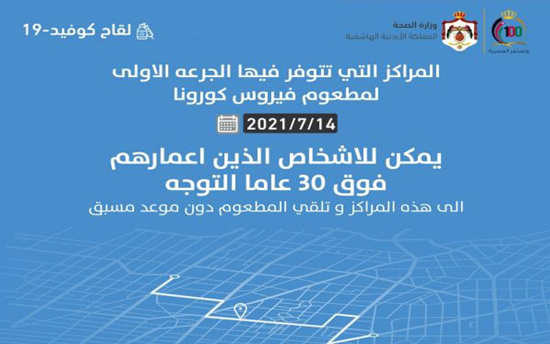 مراكز تطعيم من تجاوز 30 عاما دون موعد مسبق (اسماء)