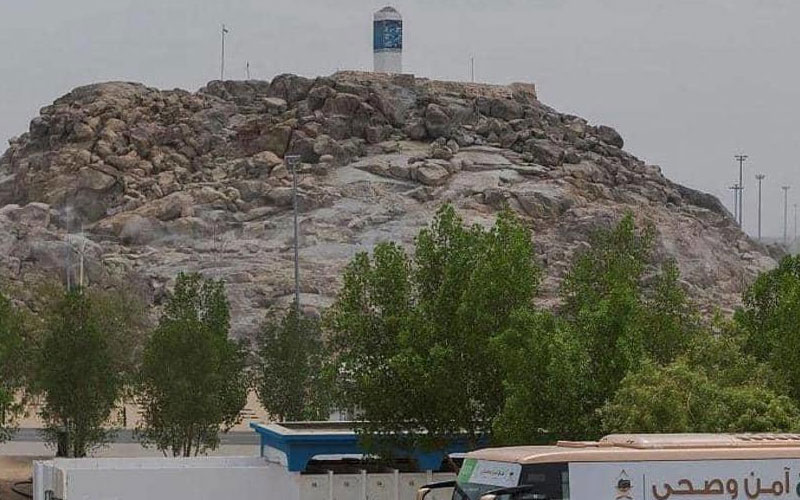 ويبلغ ارتفاع الجبل 30 مترا، ويمكن الوصول إلى قمته عبر 91 درجة، وبوسطه شاخص طوله 4 أمتار، فيما يحيط بعرفات قوس من الجبال، ووتره وادي عرنة.