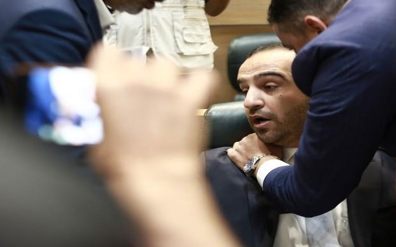 وقال، “هذا التصرف لا يليق بك كنائب، ولم نفتتح أعمال الجلسة بعد، أنت تريد تخريب الجلسة”.