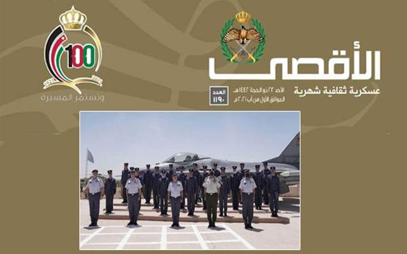 نيسان ـ صدر العدد الجديد من مجلة الأقصى العسكرية لشهر أب 2021، والصادرة عن مديرية التوجيه المعنوي في القيادة العامة للقوات المسلحة الأردنية – الجيش العربي، التي تحمل في مضمونها العديد من رسائل الدولة الأردنية والجيش العربي والمنبثقة عن مبادئ الثورة العربية الكبرى.