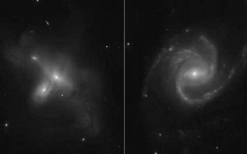 ووفقا للوكالة الأمريكية تُظهر الصورة الأولى، جسم يعرف باسم ARP-MADORE2115-273، وهو مجرتان متشابكتان على بعد 297 مليون سنة ضوئية من الأرض، وكتبت ناسا في وصف للصورة: ”اعتقد علماء الفلك سابقًا أن هذا نظام حلقة تصادمية بسبب اندماج مجرتين وجها لوجه“.