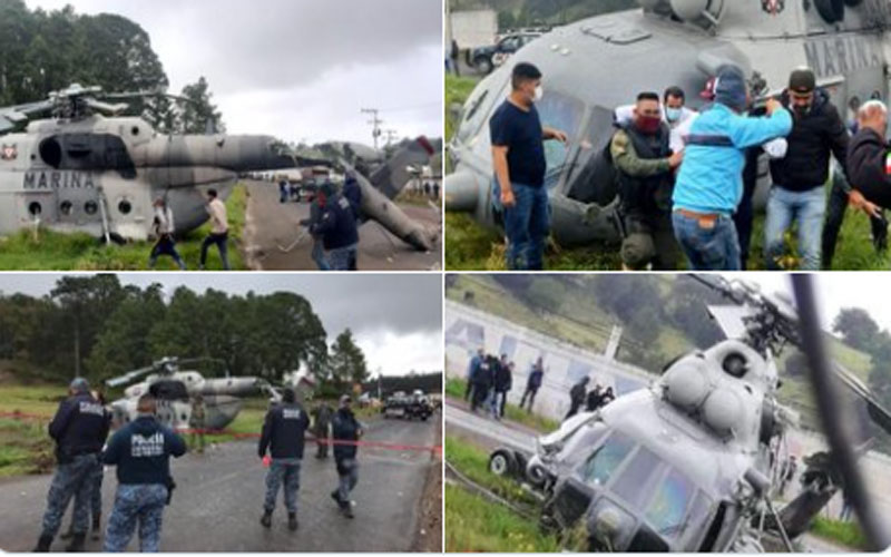 وأظهر مقطع فيديو نشر على مواقع التواصل الاجتماعي مروحية "Mil Mi-17"، تابعة للأمانة العامة للبحرية المكسيكية، وهي تحاول الهبوط، قبل فقدان السيطرة عليها وسقوطها من علو منخفض.