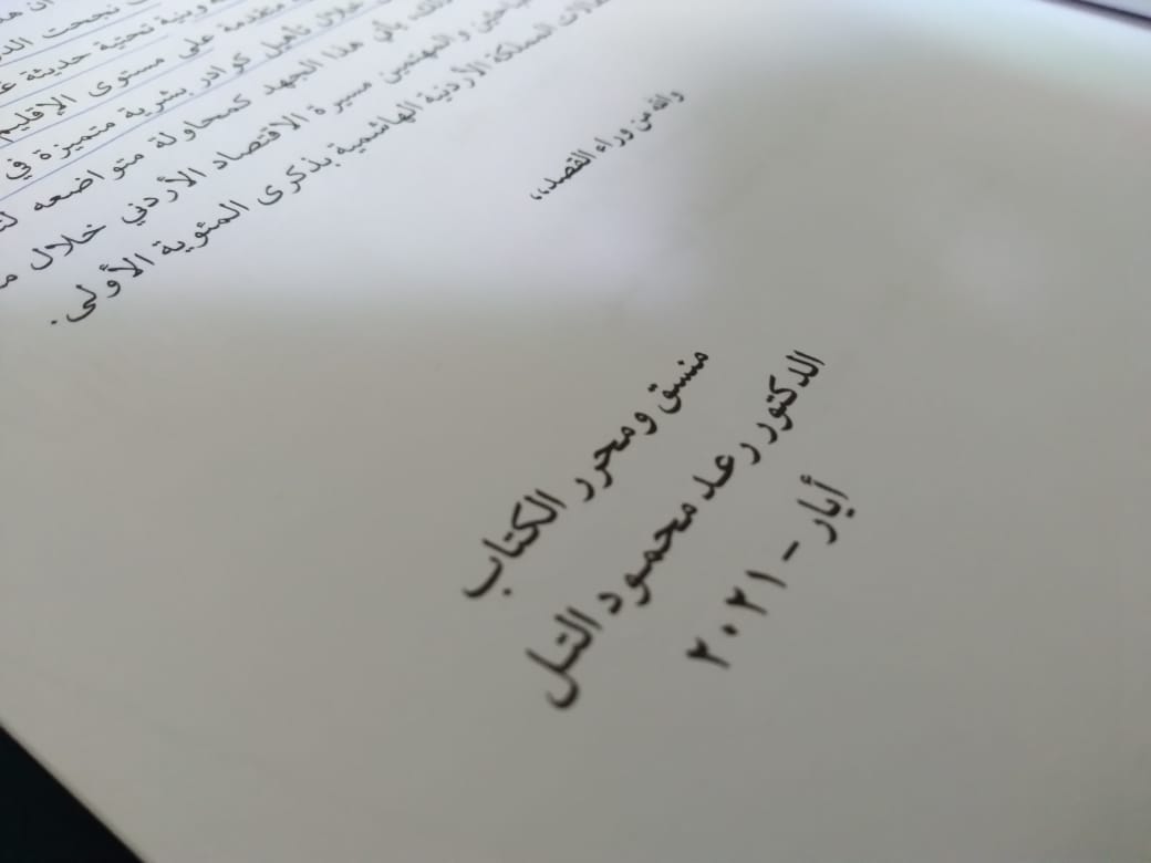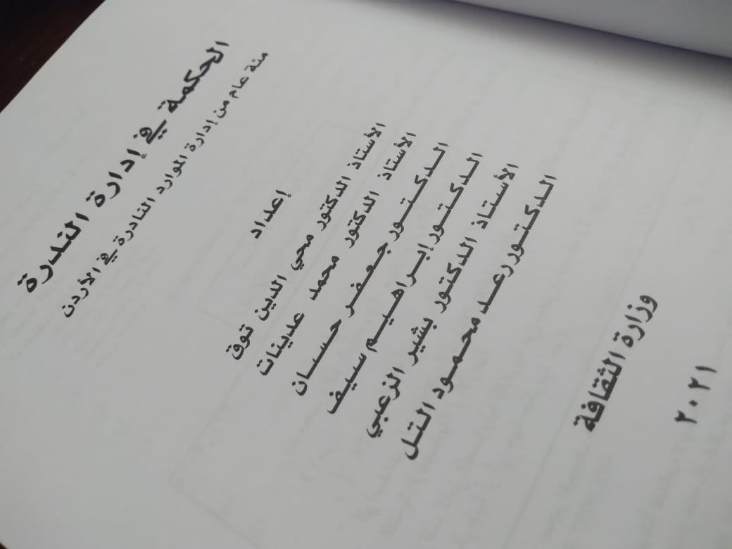 نيسان ـ اصدر كتاب "الحكمة في إدارة الندرة مئة عام من إدارة الموارد النادرة في الاردن" والذي ساهم في إعداده مجموعة مميزة من الخبراء الاقتصاديين وهم الدكتور محي الدين توق والدكتور محمد عدينات والدكتور جعفر حسان والدكتور ابراهيم سيف والدكتور بشير الزعبي والدكتور رعد محمود التل وبدعم وإشراف من وزارة الثقافة.