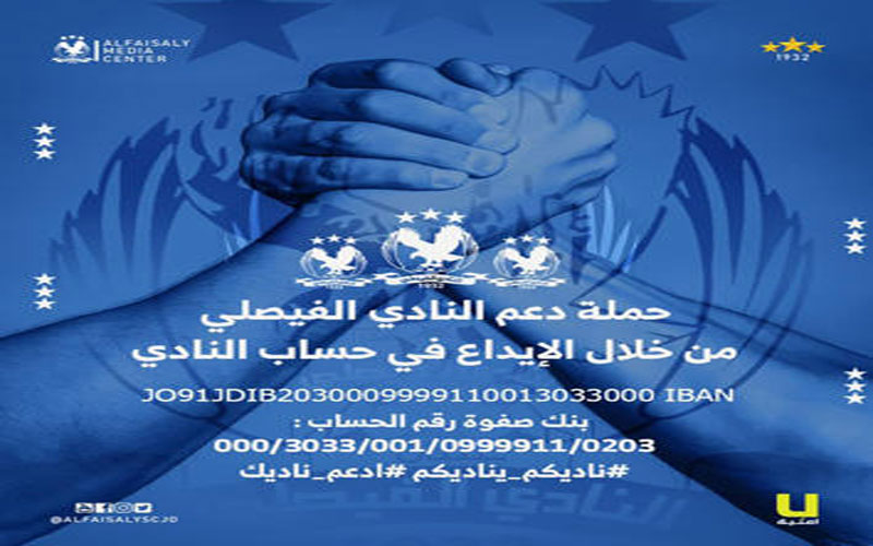 وكانت صرحت عضو الهيئة المؤقتة خديجة أبو حمور منسقة لجنة المساهمة والدعم للمركز الإعلامي للنادي أنه تم إنشاء حساب بنكي بإسم النادي ليستقبل الدعم النقدي من جماهير الفيصلي الكبيرة.