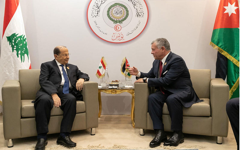 من جهته، أشاد الرئيس اللبناني الذي حمل رئيس الوزراء رسالة خطية إلى جلالة الملك عبدالله الثاني، مواقف جلالة الملك الداعمة للبنان في المحافل الدولية ومواجهته للتحديات.
