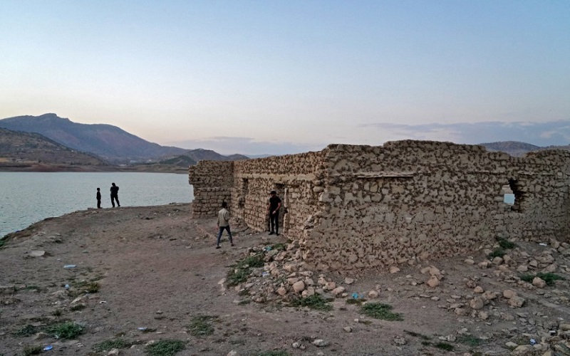 تراجع منسوب السدّ بشكل غير مسبوق وفق مديره فرهاد محمد طاهر، منذ مطلع أيلول/سبتمبر بسبب الجفاف، وكشفت المياه عن بناء شيد بالحجر، يرجح أن يكون مدرسة، يبدو أنه كل ما بقي من قرية كانت تزخر بالحياة وبزراعة العنب والتفاح والحنطة، يوماً ما.